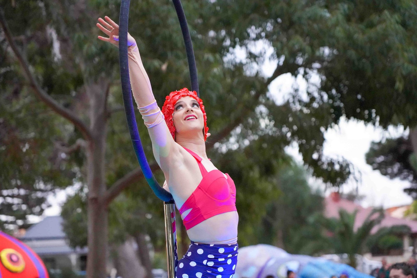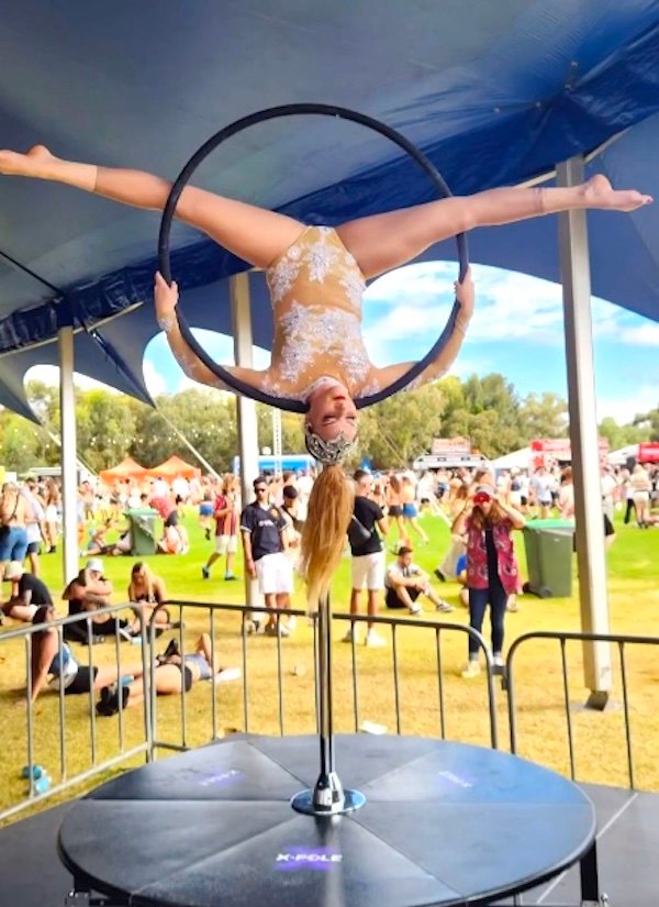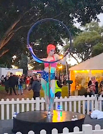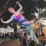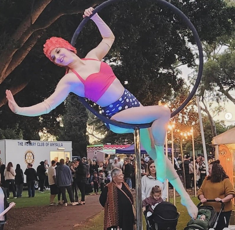 Kim is one of these performers and is based in Adelaide (and another team in Sydney). The Lollipop Lyra can be installed in a 3m x3m space for an installation/ ambient set.