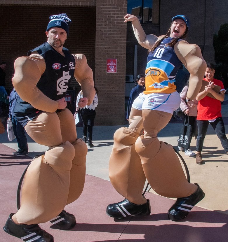 Muscle suits can be themed for sporting teams – just supply an XL guernsey and shorts and the guys can join the team!