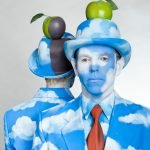 A homage to the popular Belgian surrealist artist, Rene Magritte, they incorporate the artist’s signature elements – the Businessman, the Umbrella, the Apple and the magnificent blue sky and perfect clouds.