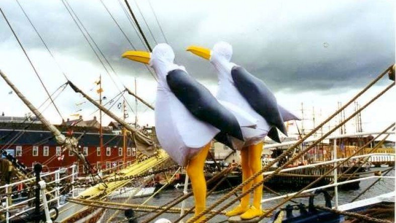 The comical Giant Seagulls and Stilt Lifesavers have kept the lines of crowds more than happy today as some of the Sydney Opera House Open Day roving entertainment.