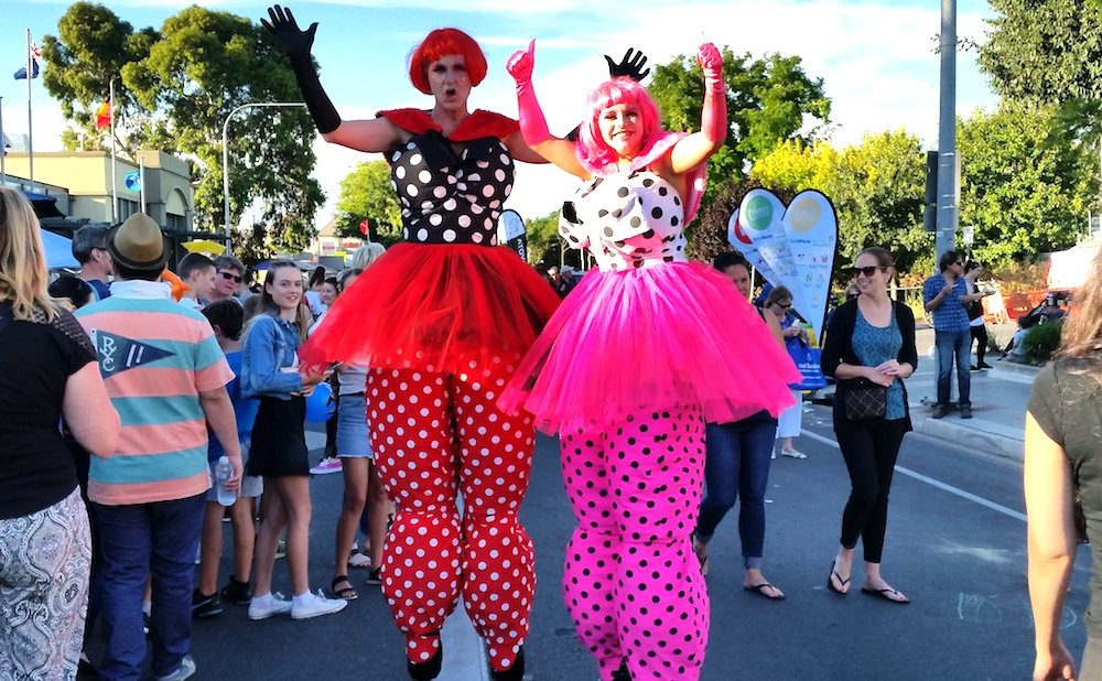 We had roving stilt walkers including our Stilt Ballerinas, Stilt Swimmers, and Funky Clowns at a number of Tour Down Under events in Adelaide this week. Tourrific Prospect and the Unley Gourmet Gala are always top on the TDU event calendar and the crowds came in droves – great time had by all!