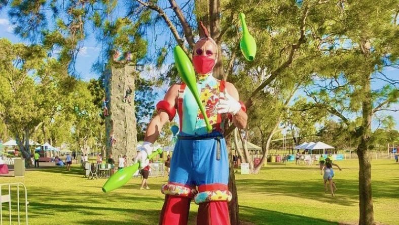 The busy NYE bookings continued with our Stilt Funky Clown roving and juggling for the crowds at Sturt Reserve, Murray Bridge. A great evening was had by all and we received wonderful feedback and a follow up booking! Thanks to the very talented Stuntman Jim who hopped onto the stilts for the night!