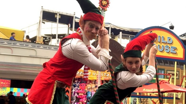 Mrs Claus on stilts & Elf, The Entrance NSW